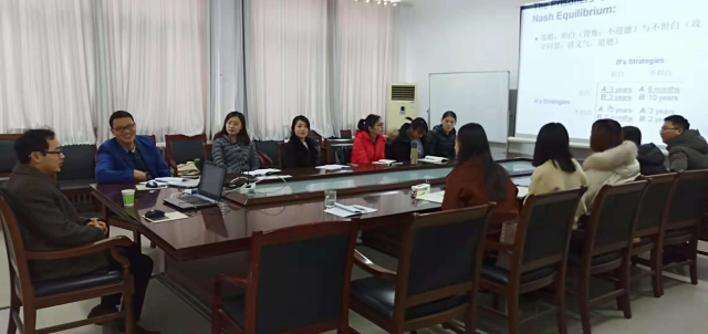 为提高公司研究生理论水平,2018年11月18日,英国be365官网邀请辽宁大学优秀青年学者、博士生导师郭广珍教授来公司给经济学专业研究生讲博弈论。郭广珍教授研究方向为新政治经济学,主要讲授博弈论、产业组织和微观经济学,在《中国工业经济》、《中国软科学》发表学术论文20余篇,主持国家自然科学基金、教育部人文社科基金和博士后基金等多项国家和省级项目,博士后导师是我国著名经济学家张军教授,曾在美国西北大学访学一年。公司全体研究生参与了此次报告。