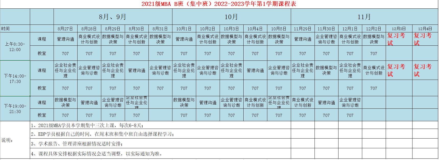 2021级MBA B班(集中班)2022-2023学年第1学期课程表