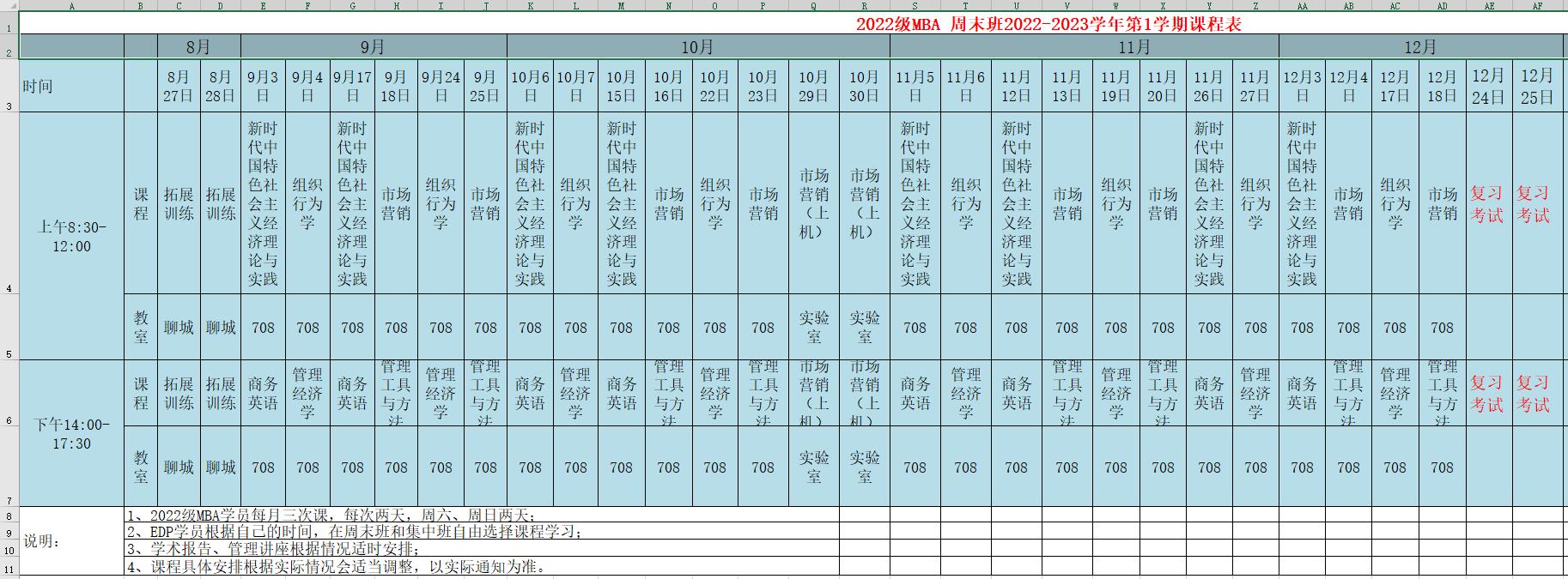 2022级MBA 周末班2022-2023学年第1学期课程表
