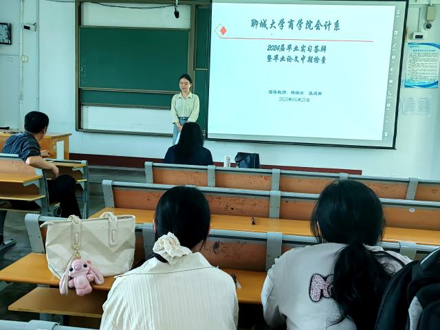 此次答辩会由毕业生汇报、教师提问、教师点评等环节组成,每人答辩时间为5分钟左右。参加答辩的同学依次汇报个人实习情况以及论文进展情况,围绕前期工作进展、实习期间的工作内容、当前存在的问题、下一步工作计划等方面使用PPT进行展示汇报。评委老师们听取员工汇报后,对实习情况及毕业论文现阶段取得的成果和进展作出了综合评价,从研究思路、技术路线可行性、研究工作进展、格式规范等方面提出了详细的修改意见和完善建议,防止毕业论文出现偏题、工作量不足等问题。并提醒同学们:合理规划时间,加快任务进度,多与指导老师积极互动沟通,确保高质量完成毕业论文。