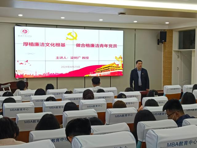 4月23日,英国be365官网于东校区1#707举办入党积极分子专题党课培训会。公司党委纪检委员、副经理梁树广以《厚植廉洁文化根基 做合格廉洁青年党员》为题,对全体入党积极分子进行了培训。