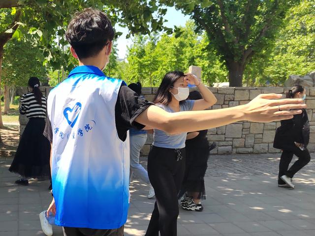 为保证核酸检测工作顺利开展,志愿者们提前集合并进行任务分配,一部分志愿者负责维持现场秩序,引导同学们按照正确路线进行核酸检测,另一部分负责协助进行核酸检测的医护人员。暖风拂面,烈日炎炎。志愿者们耐心地提醒前来检测的同学们佩戴好口罩,并指引同学们有序进入大厅进行核酸检测。身着粉色、蓝色的志愿服的志愿者们不断在队伍中穿梭,化成了一道道靓丽的风景线,也体现了公司员工党员不怕吃苦,乐于奉献的精神。进入核酸检测大厅,医护人员身旁的志愿者们身穿白色防护服,提醒同学们及时扫码并进行信息核对,确保核酸检测信息的准确性。公司青年教师党员刘洋主动请缨,协助现场医护人员做好核酸检测服务工作,充分发挥出了党员的先锋模范作用,用默默付出诠释着新时代教育工作者的责任和担当,成为员工眼中最好的“教科书”。在志愿者们的协同努力下,核酸检测工作有条不紊,高效进行,直到全部核酸同学们离开后,志愿者们才脱下工作服,露出疲惫而又灿烂的微笑。