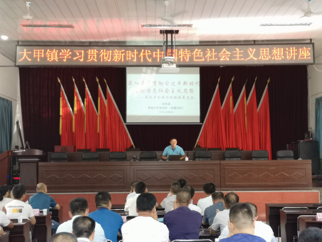 8月7日,古田县大甲镇镇政府邀请团队指导老师举办了以“深入学习贯彻习近平新时代中国特色社会主义思想——实施乡村振兴战略的着力点”为主题的党课,镇长以及所有在岗职工和16个行政村的支部书记到场学习。张宪昌老师通过习近平新时代中国特色社会主义思想的形成与确立切入,以习近平总书记参加十三届全国大一届会议山东代表团审议上的讲话为出发点,阐述了乡村振兴战略实施的重要性和着力点。结合前期调研,张宪昌老师分析了大甲镇的资源禀赋特点,指出发展工业园区是大甲镇正确的战略抉择,提出了调整优化农业结构、发展壮大乡村产业、推动实现三产融合等建议。