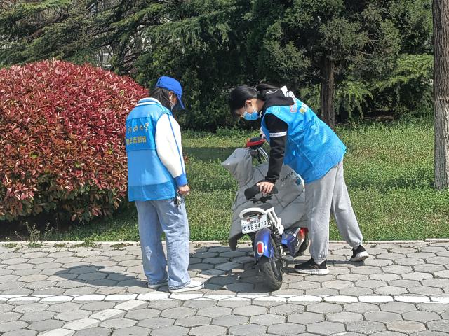 活动负责人积极做好准备工作,对志愿者们合理分配,并详细讲解服务工作要点。志愿者们勤勤恳恳,认真积极做好每一项工作。志愿者们将摆放杂乱的车辆一一排列整齐,并时时注意来往车辆。面对大风天气,志愿者们坚定服务信念,坚守工作岗位。对于时常被大风吹倒的车辆,志愿者们不厌其烦,一次又一次将车辆扶起。对不按规定停放车辆的同学,志愿者们耐心解释劝导,引导他们正确停放。在志愿者们的积极引导下,同学们纷纷配合志愿者工作,自觉地将车子停放规范。在志愿者以及来往同学们的共同努力配合下,教学楼前车辆摆放整齐,形成一条靓丽的风景线。