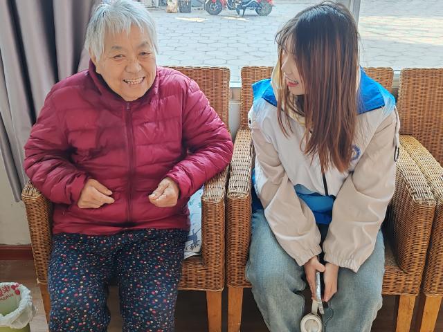 活动开始前,志愿者们有条不紊地布置着现场,摆放桌椅,搀扶老人们入座。他们细心地为每位老人准备了毛笔和宣纸,以书法为媒介,传递着对老人们的深切祝福。随后,志愿者们与老人们围坐在一起,倾听老人们讲述那些岁月沉淀的故事,与此同时,志愿者们还向老人们分享了一些实用的生活小窍门和健康知识,帮助他们更好地享受晚年生活。志愿者们通过向颐养中心负责人询问,特别了解部分老人的在党的经历,聆听老人们的故事,让爱国爱党精神代代相传。活动现场气氛温馨而和谐,老人们脸上洋溢着幸福的笑容。志愿者们的陪伴和关心,让老人们感受到了社会的温暖和关爱。