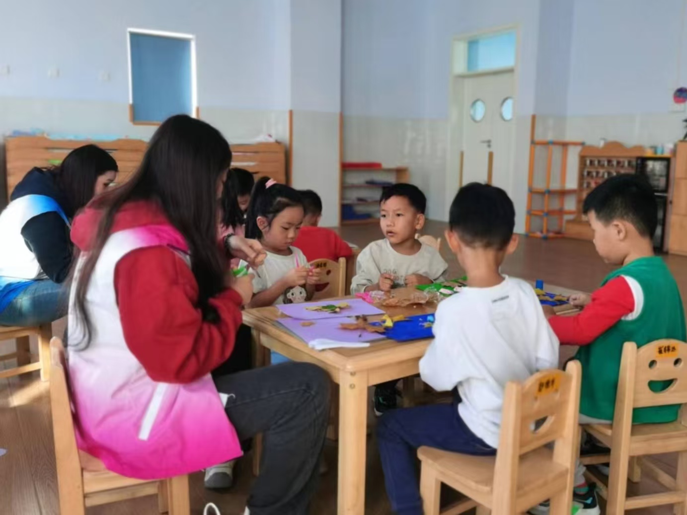 在此基础上,志愿者利用提前准备好的落叶等材料,知道陪伴小朋友们共同制作了树叶画,并在此过程中认真细致地向小朋友们普及相关知识,耐心解答小朋友们关于自然的疑问。在志愿者的悉心指导下,小朋友们充分发挥自己的想象力和创造力,用树叶拼贴成为一幅幅图画。活动现场充满了欢声笑语,气氛热烈而温馨。制作完成后,小朋友们纷纷展示自己的作品,积极表达自己的创作思路与灵感来源。
