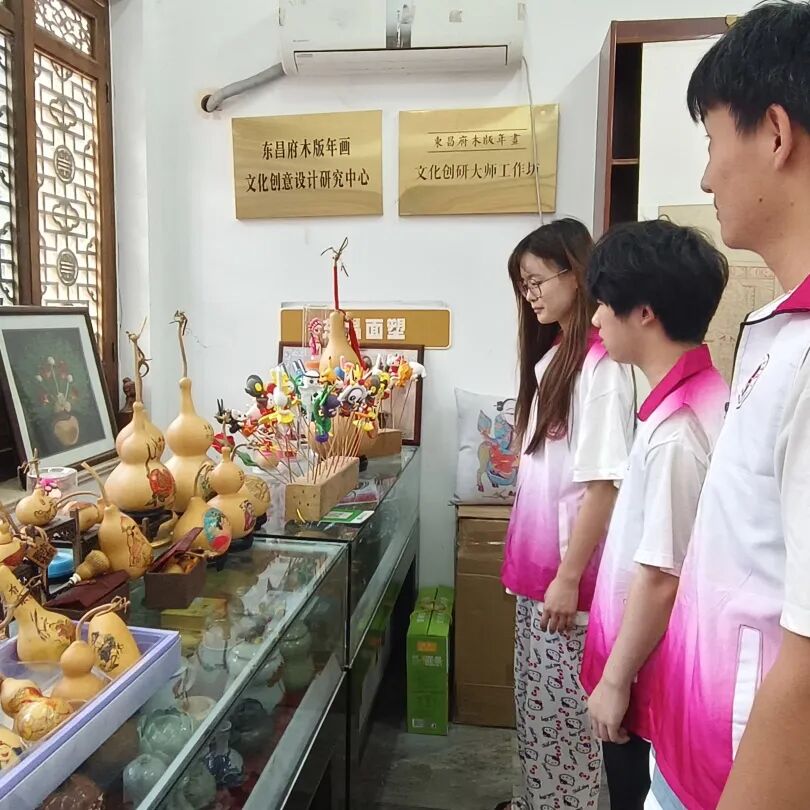 在非遗传承人带领下,实践队员系统学习了聊城木版年画的历史渊源与独特艺术风格,并深入工作室观摩制作全流程,结合传承人现场展示的选材、刻板、印刷、刀工雕刻等精湛技艺,队员们亲身参与体验了调墨、拓印等关键环节,并共同完成《连年有余》《福禄双全》等经典年画作品。