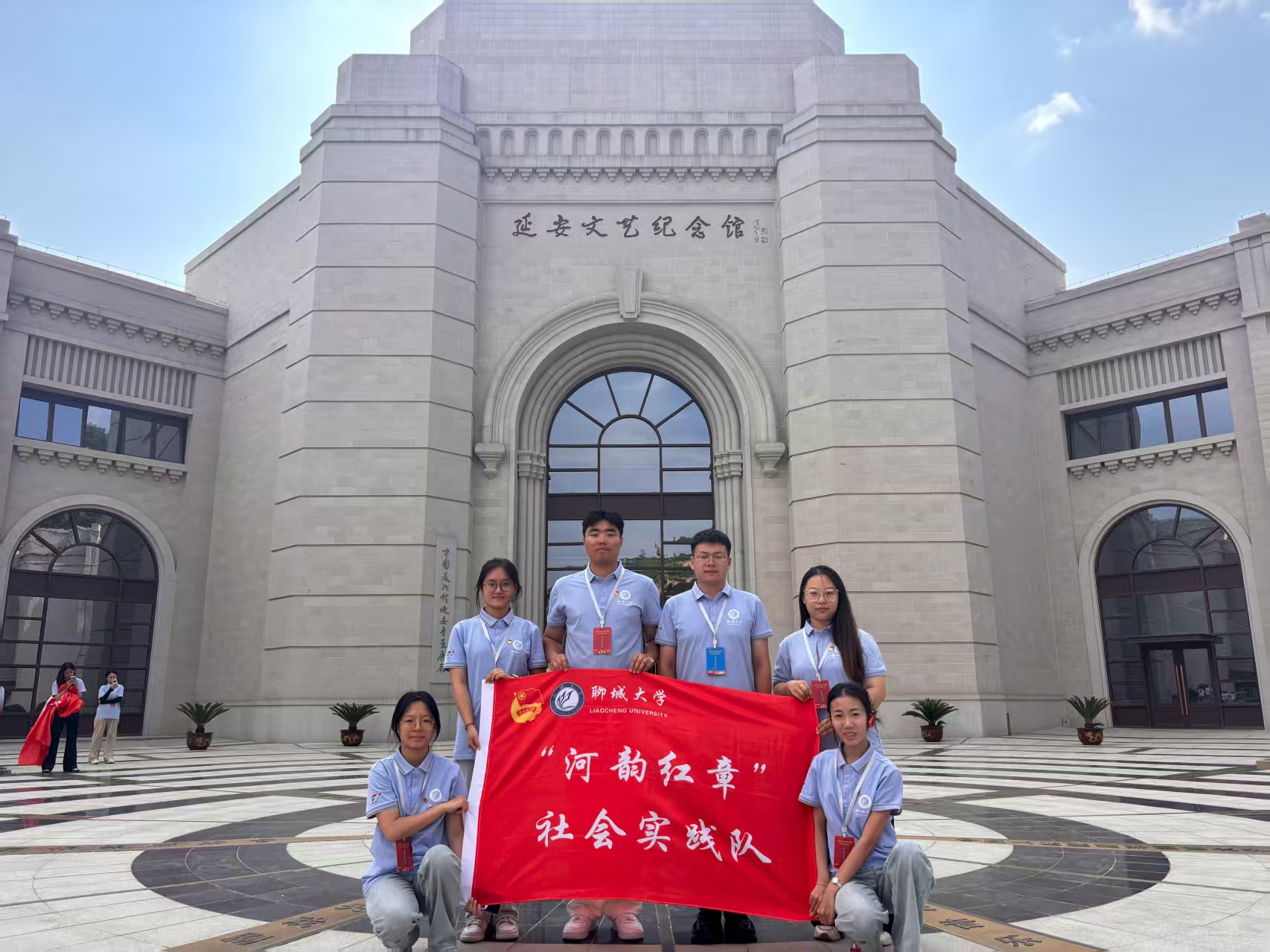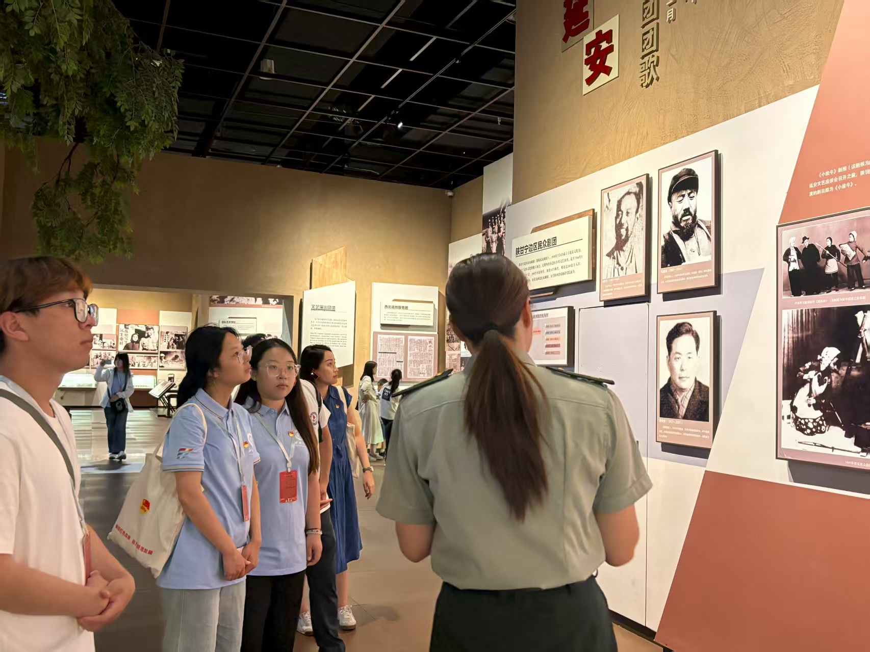 带着从梁家河汲取的深厚群众情怀,实践队于当日下午开启了追寻“文艺为人民”方向的溯源之旅。走进延安文艺纪念馆,实践队开展了一场别开生面的红色文化探寻之旅。延安文艺纪念馆,承载着中国革命文艺的辉煌记忆,是中国共产党领导下文艺发展的重要见证地。馆内丰富的文物、详实的史料,生动展现了延安时期文艺工作者以笔为枪、为人民而歌的伟大精神。
