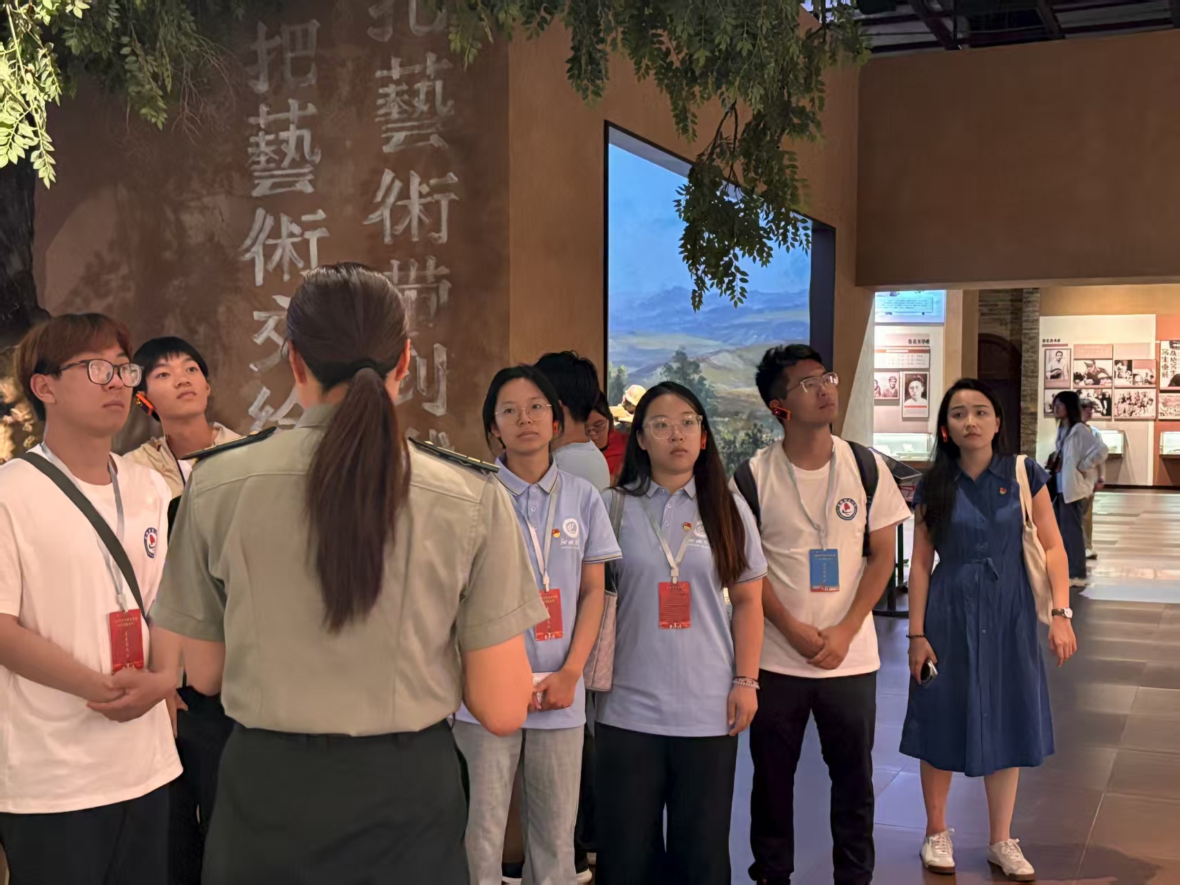 在实践过程中,队员们认真聆听讲解员的讲述,从一张张影像中,注视当年文艺工作者奔赴延安、投身革命文艺事业的坚定身影;在一件件文物中,感受先辈们艰苦创作背后的热忱与执着。