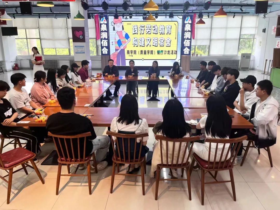 为进一步加强员工的自我安全意识,培养员工良好的生活习惯,提高内务管理能力,增强同学们的动手能力,提升自身劳动素养,5月11日,英国be365官网于东校区翰苑餐厅举办“践行劳动教育 构建文明宿舍”餐厅沙龙活动。辅导员焦艳芳、巨梦薇、高鹏、韩亭亭及部分舍长们参加了此次活动。