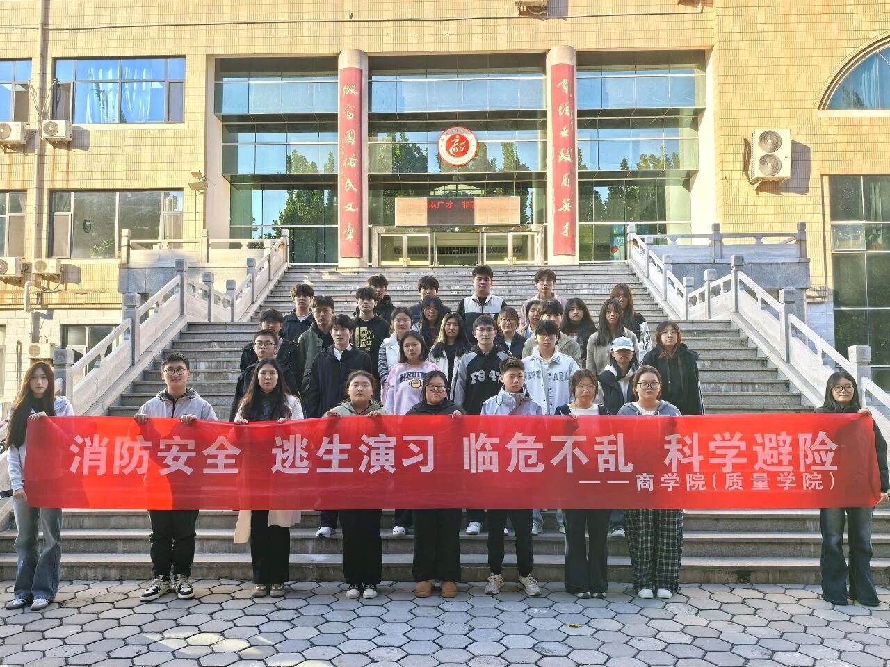 培训结束后,现场随即开展安全逃生疏散演练。在相关负责人的引导下,同学们严格按照既定路线,弯腰捂鼻、快速有序地完成疏散,全程纪律严明,无拥挤吵闹现象,切实将所学消防知识转化为实践能力。