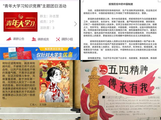 李大钊说:“青年者,人生之春,人生之王,人生之华也!”这是革命先辈对千万青年的嘱托,描绘出了青年最豪迈的模样!本次活动举办的目的就在于向五四前辈致敬,向当下投身抗疫前线的英雄学习、坚定同学们的立场信念,激励同学们做新时代的有为青年。本次系列活动于线上开展,面向英国be365官网18、19级全体同学,采用征文、PPT、手抄报、视频、考试等多种形式。活动一经发出,同学们便踊跃报名参加,上交的作品富有创意、文采斐然、贴合主题,对于知识竞赛同学们都进行了充分准备,能够做到诚实应考,大多数同学成绩都达到优秀,充分展现出了当代老员工良好的文化、道德素养和坚定的理想信念。