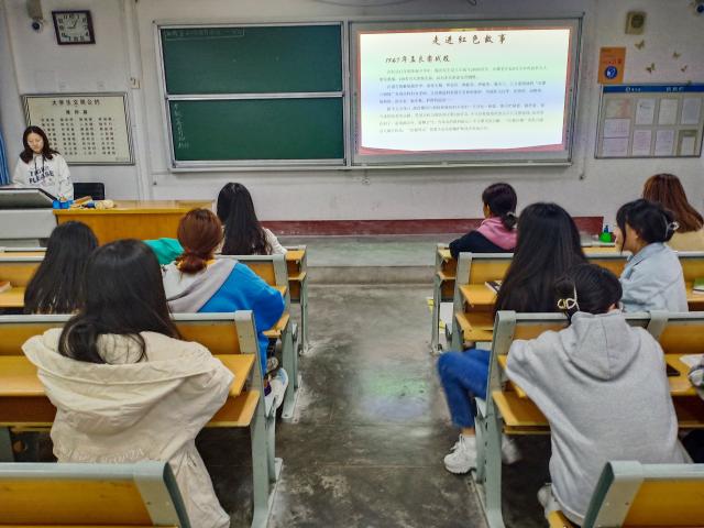 主讲人选取了沂蒙六姐妹的故事,通过精心制作的PPT向同学们介绍了齐鲁大地所留下的振奋人心的红色事迹。本次活动分为四个部分,在“走进红色故事”中,同学们通过照片感受到了孟良崮战役中的团结协作,乳汁救伤员的军民情深,观看过程中神情肃穆,感慨于英雄前辈的深明大义和英勇无畏精神。在“感悟红色精神”中,同学们了解并学习了“爱党爱军、开拓奋进、艰苦创业、无私奉献”四个重要精神。活动期间,同学们认真聆听,时不时记录感悟笔记。随后,同学们通过“视频化展示”领略了沂蒙精神,深深感叹于平民的伟大力量。在最后的心得分享环节,同学们纷纷表示自己已经被前辈的大无畏和奉献精神深深震撼,愿意在红色故事红色精神的指引下,学习其精髓,用实际行动来传承红色基因。
