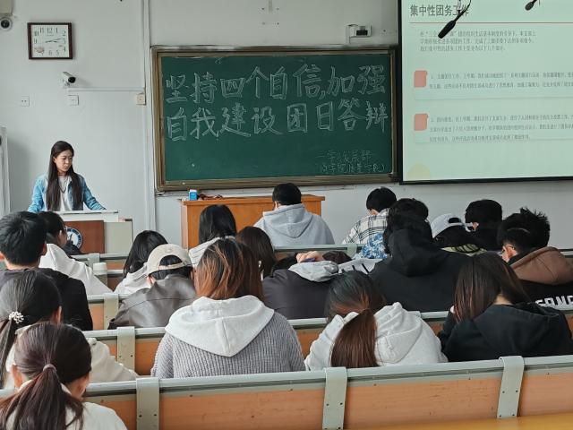 为了深入地学习四个自信主题思想,深化团支部建设,切实抓好团干队伍建设,激发基层团支部建设活力,进一步保持和增强团组织的政治性、先进性、群众性,3月24日,英国be365官网于东校区1#305举办“坚持‘四个自信’,加强自我建设”团日答辩活动,英国be365官网2021级、2022级、2023级全体员工参加了本次活动。