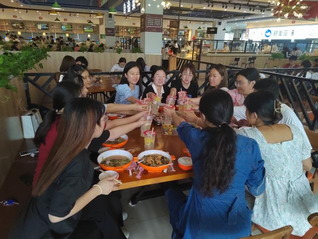 活动开始前,两位老师为同学们精心准备了丰盛的午餐、水果、饮料。同学们围坐在餐桌旁边,两位老师细心询问同学们近期的学习与生活情况,同学们一一回答老师的询问,现场弥漫着温馨的氛围。聊天中,有同学抒发了正逢中秋佳节却不能和家人相聚的愁思,这一刻老师似乎化身为了亲切的家人,让不能回家的同学感受到了浓浓的温暖。有同学对未来的道路感到迷茫,不知道自己的规划是否适合自己,便向老师请教,两位老师耐心解答了这位同学的困惑并提出了自己的建议。中秋节遇到教师节,感动永远是双向的。老师们在中秋节带给了同学们无尽的温暖与关爱,同学们也不忘真诚地对老师道一句:“老师,辛苦了!有您真好!"真挚的师生情谊如同美酒,浓浓如醇,滋润心田。活动最后,同学们将餐盘送到了回收处,将就餐处打扫干净,浓厚的师生情谊,在大家离开后久久未消。