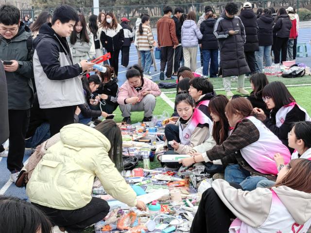 活动当天,田径场上洋溢着欢乐与温馨的气氛。同学们纷纷捐出自己心爱的物品,从书籍、文具到手工制品、画作,每一件都承载着他们的爱心与关怀。志愿者们将捐赠物资分类标价,整齐地摆放在两元区,五元区,十元区等摊位,并在现场统一放置收款码。同学们穿梭在各个摊位之间,欣赏、挑选、“讨价还价”,收获满满。“买”与“卖”的过程中,每一位参与者都怀揣着一颗奉献之心,用实际行动演绎着雷锋精神的现代意义。除了义卖物品,星光义卖表演是义卖现场最受欢迎的环节之一,志愿者们通过唱歌、舞蹈等形式,传递着公益理念和雷锋精神,为活动增添了生机和活力,赢得了现场师生们的阵阵掌声和赞许。