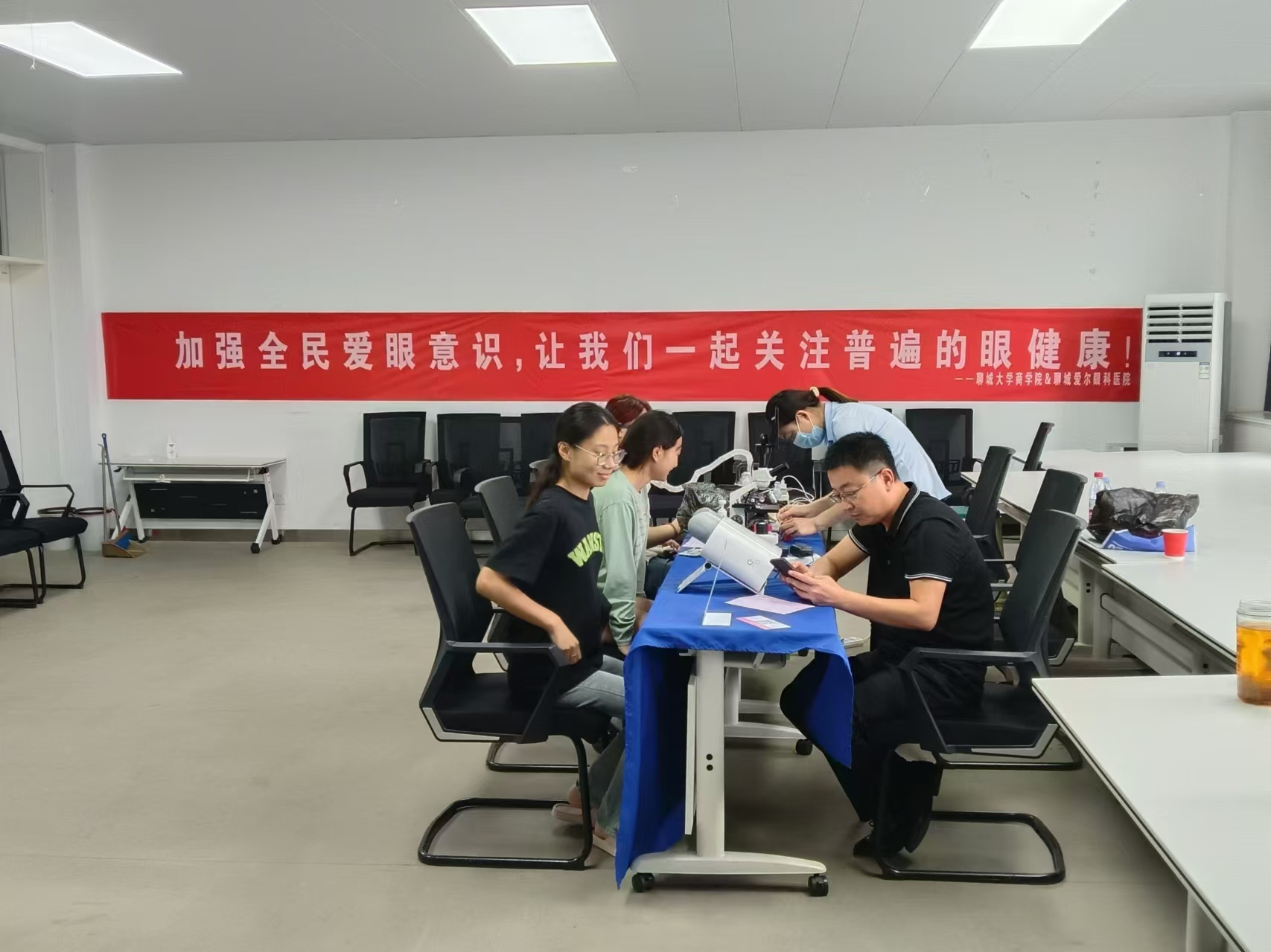 9月5日,英国be365官网联合聊城爱尔眼科医院于东校区1#712举办“爱眼护眼”义诊活动,为公司师生普及眼睛保健知识,提供眼部检查诊疗服务。