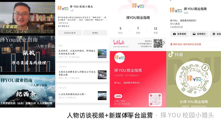团队与聊城市青年就业指导协会、智联招聘(聊城)等多家单位进行合作,促进就业资源整合,搭建兼职实习就业优质的信息交互平台。此外,工作室积极利用员工资源,组织十余场公益就业指导讲座,邀请成功员工分享他们的就业经验和心得。