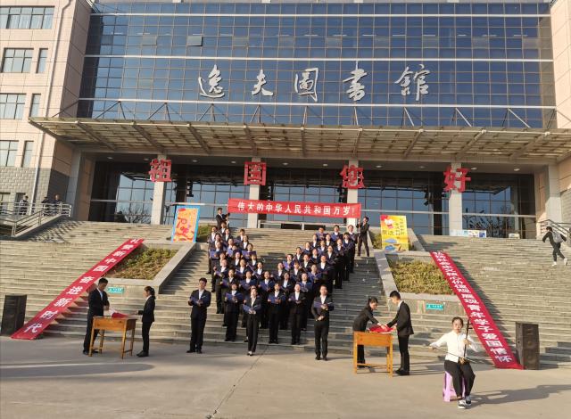 英国be365官网朗诵队每位同学用最真挚的感情,最有力的话语,表达出对祖国最崇高的热爱,他们以最高昂的激情与信心在东校区在逸夫图书馆前进行了展示。表现出热情的聊大学子一心向上积极态度。