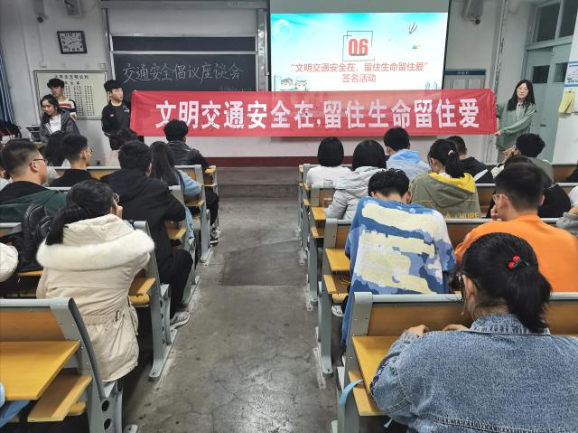 活动伊始,由主持人致辞发言,播放交通安全事故的相关视频,讲解相关案例。一幕幕触目惊心的事故视频,一个个违反交通规则的事例,令同学们震惊。大家认真观看视频,将违规行为牢记在心,时刻警醒自己。紧接着,由活动组织者宣读交通安全倡议书,呼吁和倡导全体同学认真学习交通安全法律法规,做到文明交通,共同争创文明校园。宣读完毕后,与会成员排队依次上前,共同在横幅上签上自己的名字,表达自己要低碳安全交通、共创文明校园的坚定决心。在问答环节,同学们也纷纷表达了自己对交通安全的见解与希冀。活动的最后,由主持人进行总结致辞,为活动画上圆满的句号。