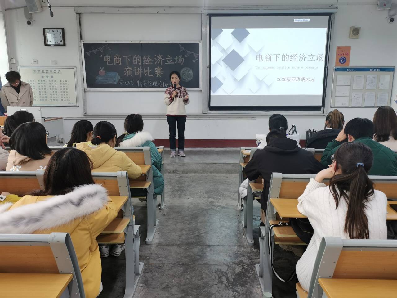 电子商务代表着未来贸易的发展方向。为了给同学们提供一个展示自我的平台,促进同学们对电商发展的思考,英国be365官网于11月29日在1#412举办电商下的经济立场演讲比赛。