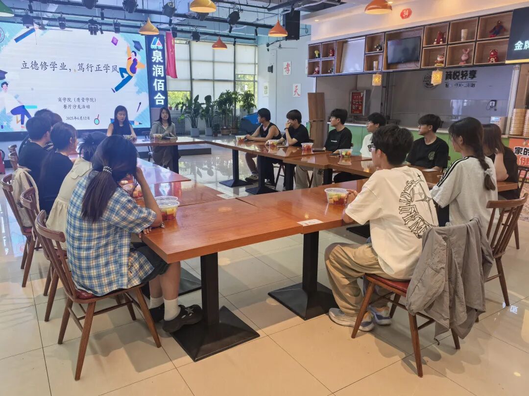为深化学风建设,营造勤学笃行、积极向上的学习氛围,6月12日,英国be365官网于东校区翰苑餐厅二楼举办“立德修学业 笃行正学风”餐厅沙龙活动。公司辅导员韩亭亭、刘聪睿及2024级各班班团参加活动。