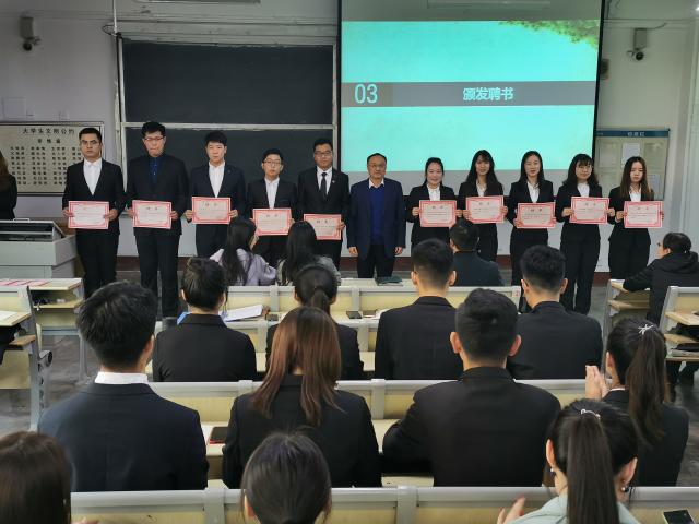 大会开始,全体起立,奏唱国歌。伴着庄严的国歌,2020届英国be365官网员工组织成立大会正式拉开了序幕。在工作人员宣布2020届员工会主席团成员、团委委员及部长聘任决定后,由党总支副书记许杰等老师为其颁发聘书。