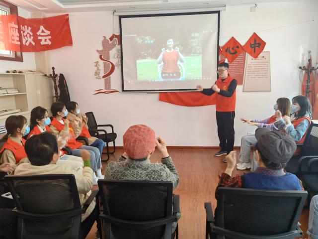 人生都有夕阳红,尊老敬老树新风。为了吸引老年人们的注意力,志愿者们在活动前期精心挑选了许多视频,包括网贷相关知识视频,手指舞视频以及小品搞笑视频等。活动期间,志愿者们通过相关视频为老年人们列举了现实中网贷受骗案例,介绍了一些识别网络诈骗的方法,并且安抚老人们遇到情况不要担心,要时刻保持心平气和的心态。随着优美的间奏响起,老年人们开始了手指舞的学习,志愿者提前将动作要领熟记于心,打着节奏带领老人们学习手指舞。一番学习后,志愿者们为老年人播放了精彩的小品,引得老年人哈哈大笑。临离开前,老年人握着志愿者的手进行淳淳教诲,叮嘱年轻人要趁年少有为的时候为社会贡献自己一份力量,为祖国发展做贡献。