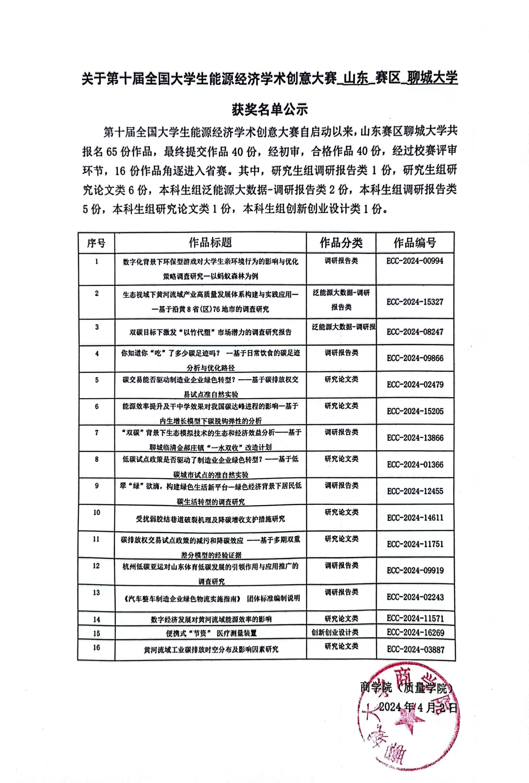 关于第十届全国老员工能源经济学术创意大赛山东赛区 英国be365官网 获奖名单公示
