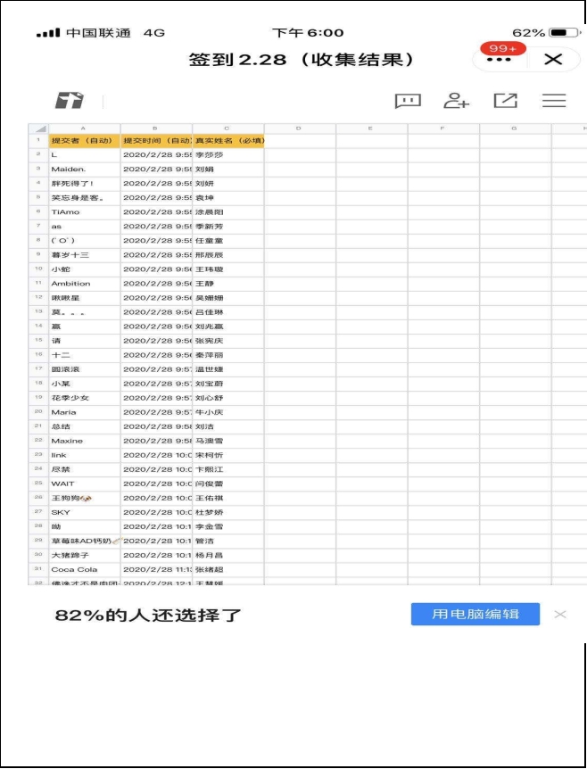 为了保证教学效果,监督员工线上学习,有些老师通过各种线上教学平台技术方法,让同学通过线上签到,保证到课率。如有的老师通过QQ在线签到,有的通过雨课堂工具签到,有的通过智慧树学习进度和在线人数查看员工到课率。下图分别为通过QQ、雨课堂和智慧树查看员工到课率情况。