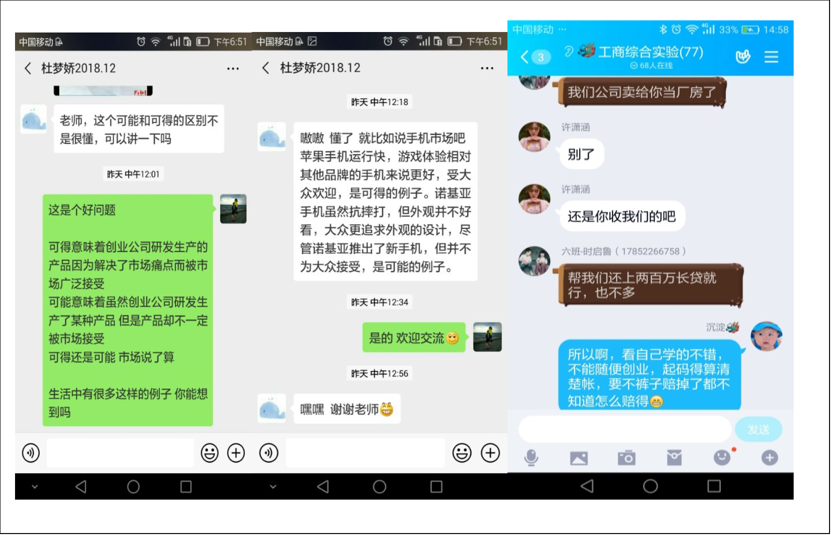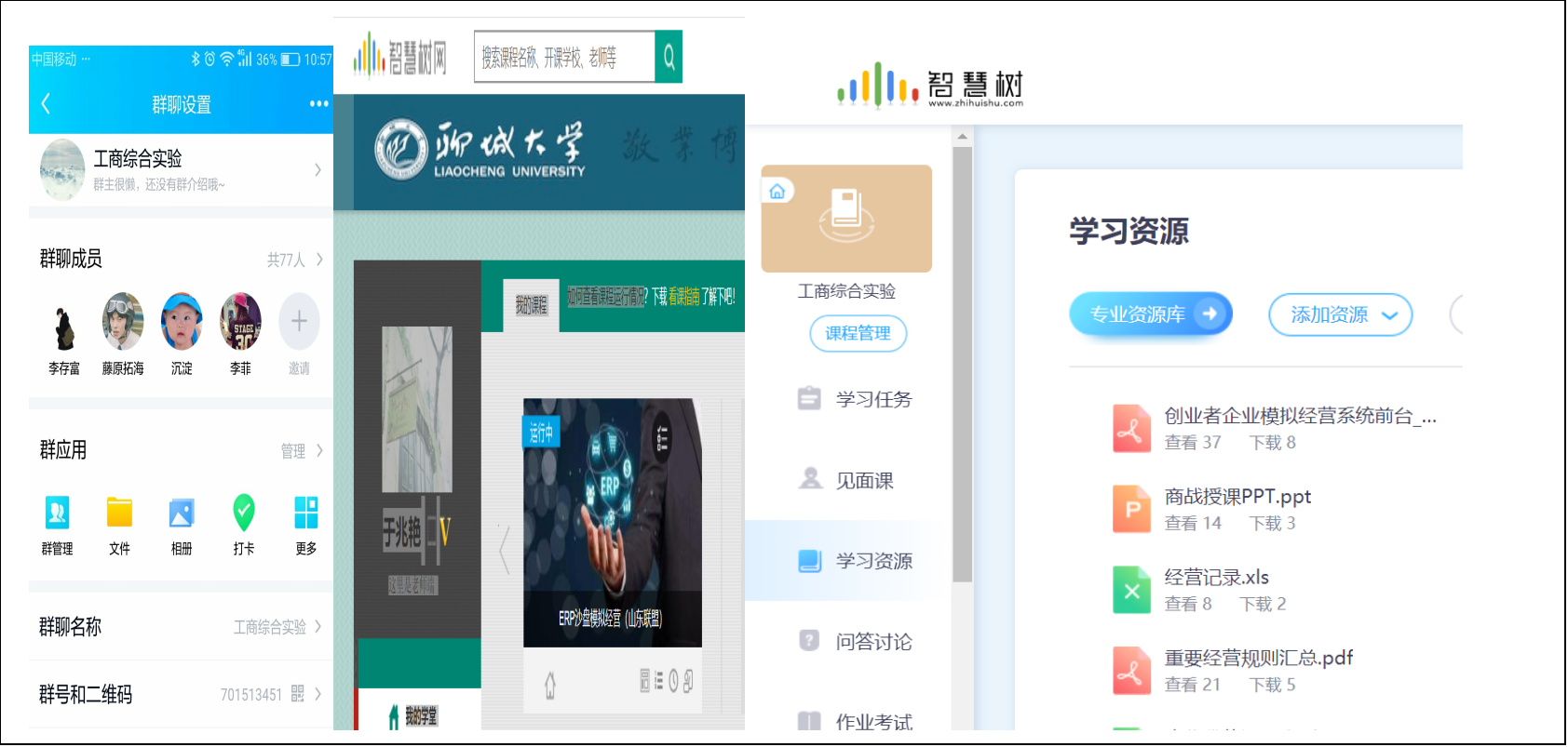 工商管理系教师通过各种形式进行线上教学,有的借助于智慧树平台,让员工在线听课,有的是通过直播,有的是通过下发课件等各种形式。王鹏冕老师通过电子书、QQ群和各大视频网站进行教学。于兆艳老师通过QQ+新道云+智慧树直播实现了工商管理综合实验教学。