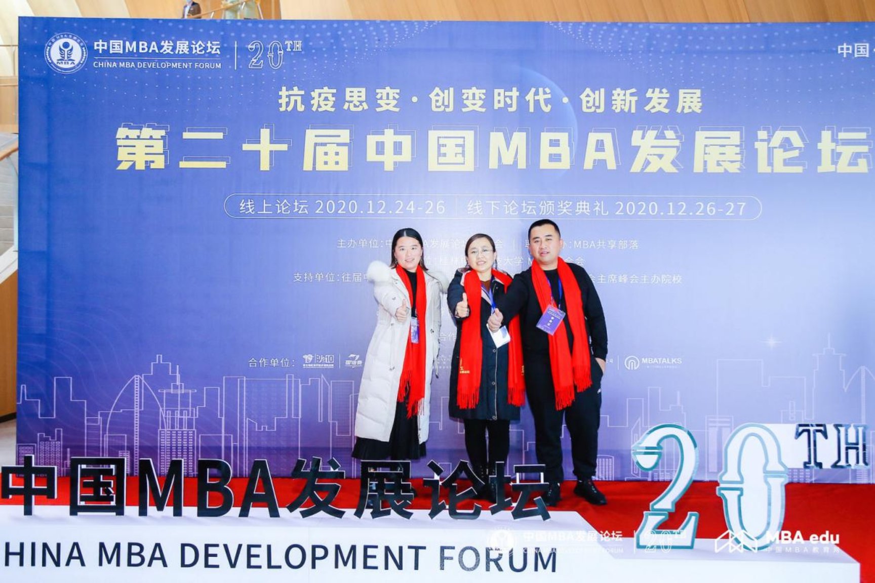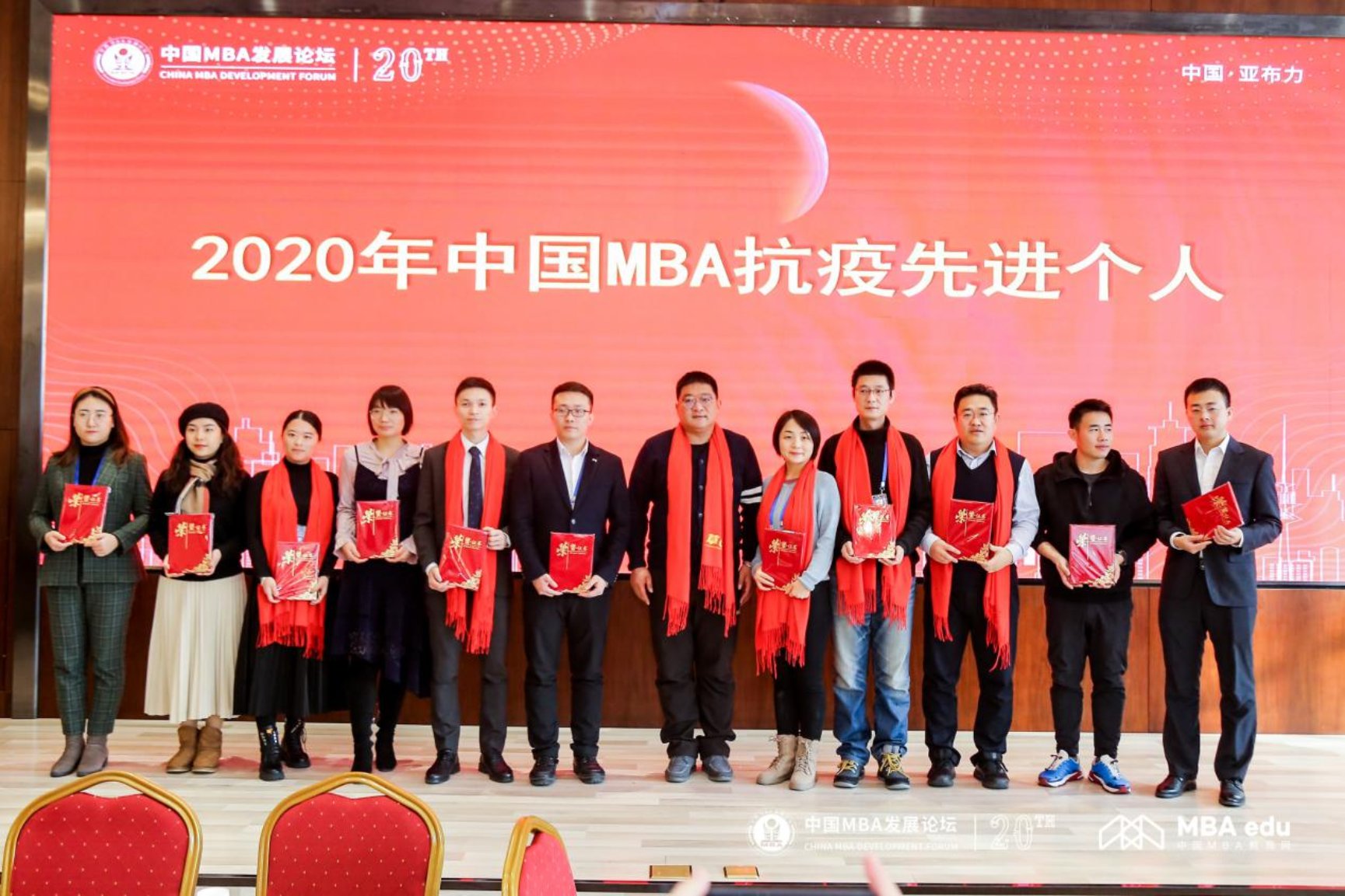 值此中国MBA发展论坛迎来二十周年之际,在闭幕式暨颁奖典礼上,论坛历届主办院校到场的师生代表上台共同庆祝中国MBA发展论坛二十周年。会议宣读中国MBA2020亚布力共识。公司MBA教育中心荣获“中国MBA抗疫先进集体”;2020级员工孟博、刘蕾荣获“中国MBA新秀100”;2020级员工刘蕾、邓丽雯荣获“中国MBA抗疫先进个人”。