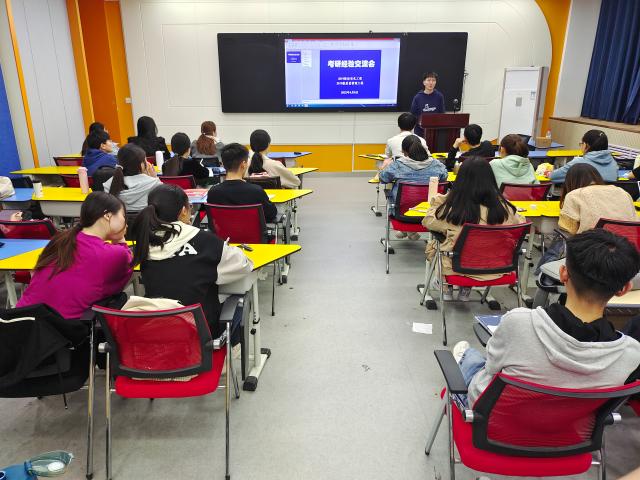活动伊始,主持人介绍了受邀参与此次交流会的两位老师和四位今年考研成功的学长学姐,旨在为同学们传授经验,打消考研路上的困难和疑惑。紧接着,四位学长学姐依次发言,在做完简短的自我介绍后,他们用亲身经历向同学们分享宝贵的学习经验,为大家出谋划策,解答考研的种种疑惑,点亮同学们考研路上的一盏明灯。同时,他们还围绕高数、英语、政治、专业课四个模块的考试内容和考试技巧进行了具体的介绍,此外,四位学长学姐结合自身考研情况,细致地讲解了备考阶段的心态调整和作息安排,并就如何择校选专业、如何安排学习时间等问题提出了实用的建议。在认真聆听完学长学姐们的经验后,同学们还积极提出自己在备考过程中出现的问题,学长学姐们一一解答,并且向准备考研的同学们表达了真挚的祝福和美好的期望。