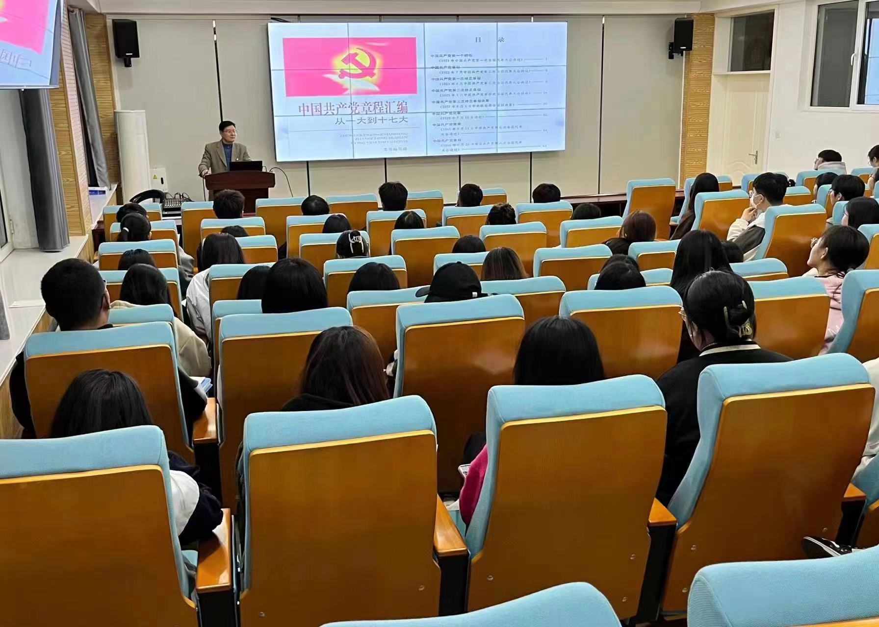公维才为入党积极分子作了《中国共产党章程》的专题党课,一方面回顾了党章的发展史,分别从狭义和广义视角阐明了党章的基本结构。另一方面讲解了党的二十大对党章的修改重点,突出了写入党章的内容:如,将习近平新时代中国特色社会主义思想新发展写入党章;把党的初心使命、党的百年奋斗重大成就和历史经验的内容写入党章;把发扬斗争精神、增强斗争本领的内容写入党章;把走中国特色社会主义法治道路,发展更加广泛、更加充分、更加健全的全过程人民民主写入党章等。在此基础上,归纳了党章的名与实、变与常的哲理。