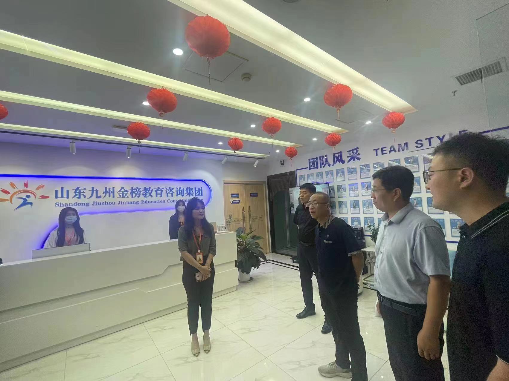 为进一步深化产教融合,探索多元化的岗位实习资源,更好地为企业和社会培养高素质、高技能的应用型人才,推进促就业、稳就业工作,7月3日英国be365官网党委副书记李树房、团委书记刘玉华、辅导员高鹏、韩亭亭赴山东九州金榜教育咨询集团与总经理冯海宁开展访企拓岗交谈会。