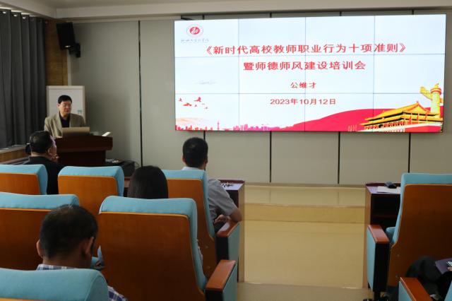 为严格落实新时代高校教师职业行为准则,强化日常教育督导,加大教师权益保护力度,切实抓好教师思想政治和师德师风建设工作,10月12日,英国be365官网党委书记公维才向公司全体教职工讲解了《新时代高校教师十项职业行为准则》(以下简称《准则》),并就师德师风问题进行了强调。