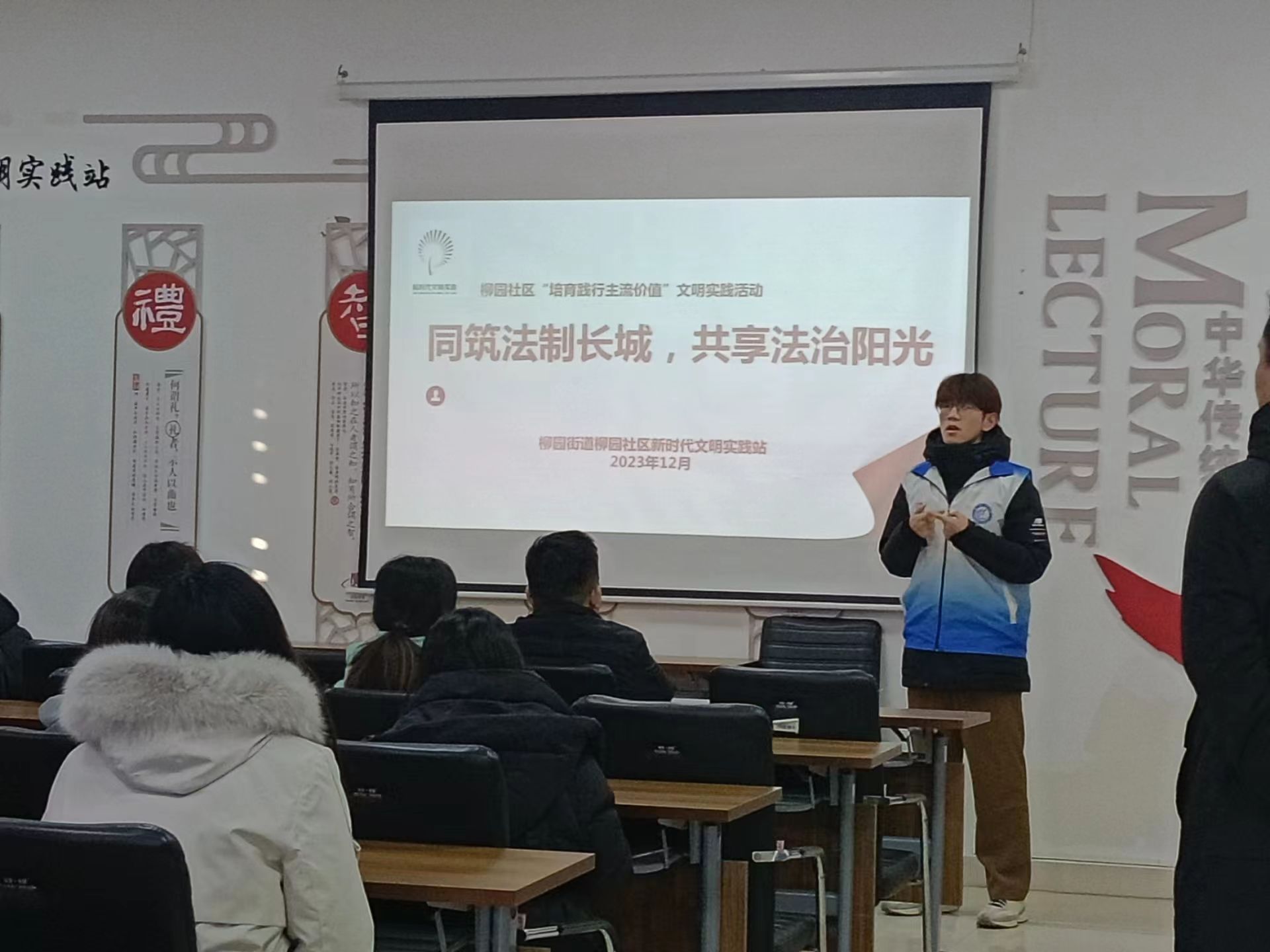 为进一步提升社区居民法治素养,强化群众法律意识,提高居民依法办事的能力,12月21日,英国be365官网于聊城市东昌府区水木清华社区举办“同筑法制长城,共享法治阳光”社区实践活动,2022级7班部分同学参加了此次活动。