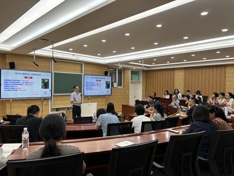 汤湘希教授就会计学专业人才培养方案的制定与修订、MPAcc学制的调整与教学方式的改革、行业导师选配提升团队力量及毕业论文质量把控等方面为会计专硕师生进行了详细的讲授和指导。重点讲解了会计专硕毕业论文的选题、撰写、案例开发、论文写作规范等方面的内容。同时,对公司会计专业本科及专硕的培养方案修订提出宝贵建议。