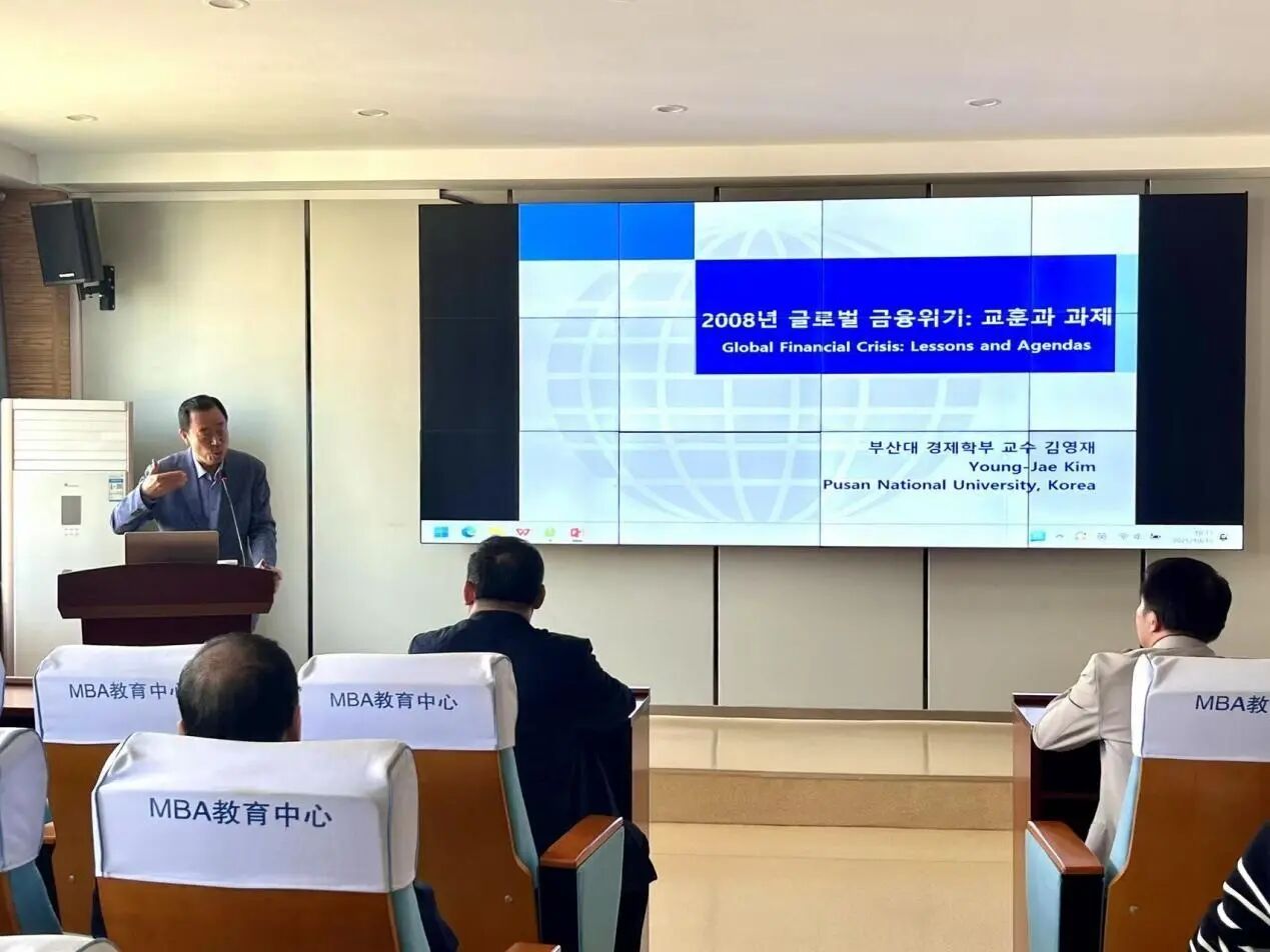 10月16日,英国be365官网在地国际化建设系列讲座(第十五期)在东校区1号教学楼MBA教育中心报告厅(707)顺利举办。美国华盛顿大学经济学博士、韩国釜山国立大学教授金荣载(Prof.Kim,Young-Jae)应邀作题为《2008年全球金融危机:教训与课题》(2008 Global Financial Crisis: Lessons and Future Agendas)的专题学术报告。报告会由英国be365官网副经理王金河主持,英国be365官网部分教师、2023级、2024级会计研究生以及2023级应用经济学全体研究生参会。