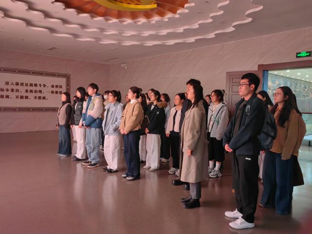 10月24日,英国be365官网硕士生导师匡萍教授、刘洋博士带领2025级会计专业硕士研究生赴聊城市廉政教育馆参观学习。在观看完《警钟长鸣》警示教育片后,全体师生在解说员的带领下先后参观了展馆内的序厅、史厅、知厅、行厅、鉴厅和醒厅六个展厅。