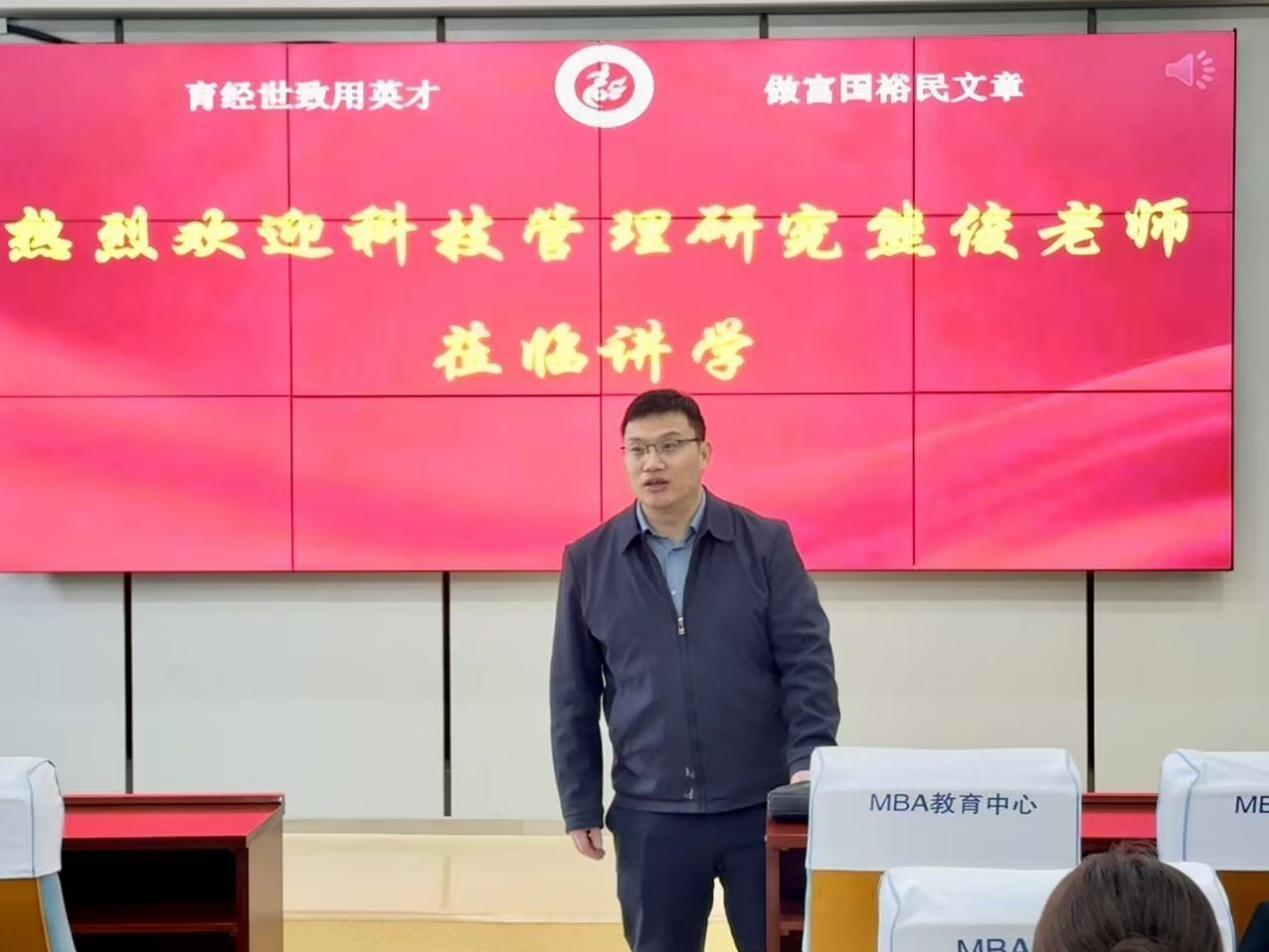11月6日,原《科技管理研究》杂志社副主编熊俊老师应邀赴公司作题为《科研论文写作与发表》的专题学术报告会,报告会由经理梁树广主持,MPAcc中心部分教师及2024级会计硕士、2024级和2025级应用经济学学硕参会。
