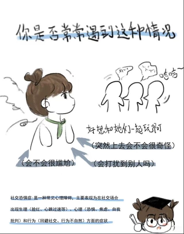 “每次遇到陌生人,就紧张得手心冒汗;班级聚餐时,总想找个角落躲起来,害怕被点名发言;明明心里有想法,却不敢说出来,怕说错被笑话。我讨厌这样的自己,却不知道怎么才能克服社交恐惧,融入集体。”
