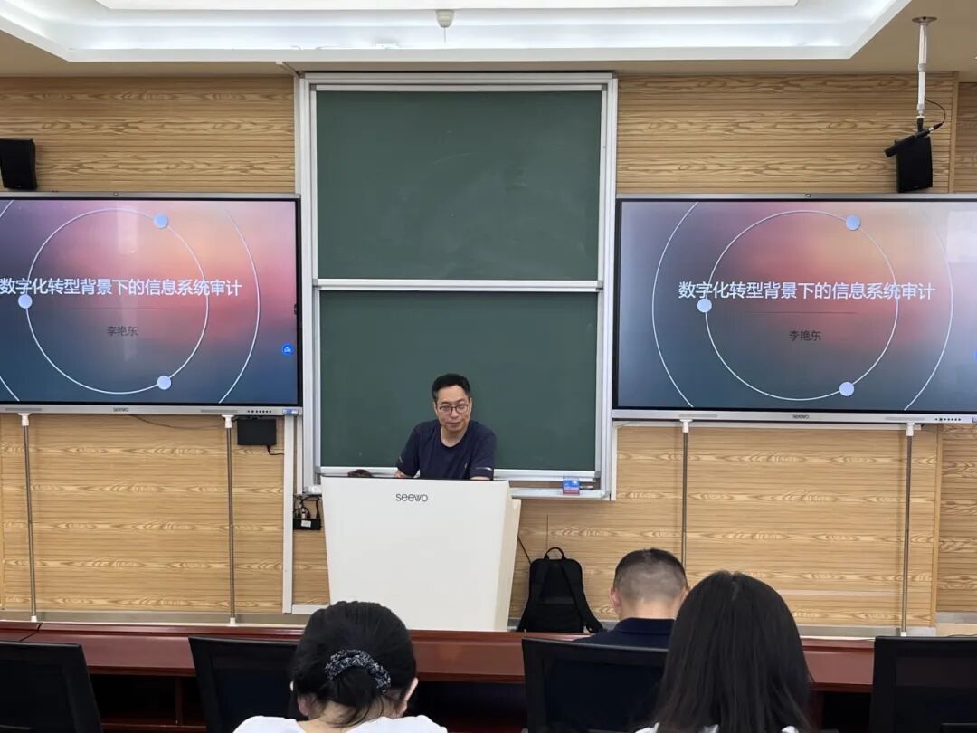 6月13日上午,北京中信银行审计部资深经理、中国财政科学研究院会计博士李艳东博士做客英国be365官网,作题为《数字化转型背景下的信息系统审计》的专题学术报告,报告会由英国be365官网会计系系主任张延辉主持,英国be365官网全体教师及会计专硕2024级全体研究生参会。