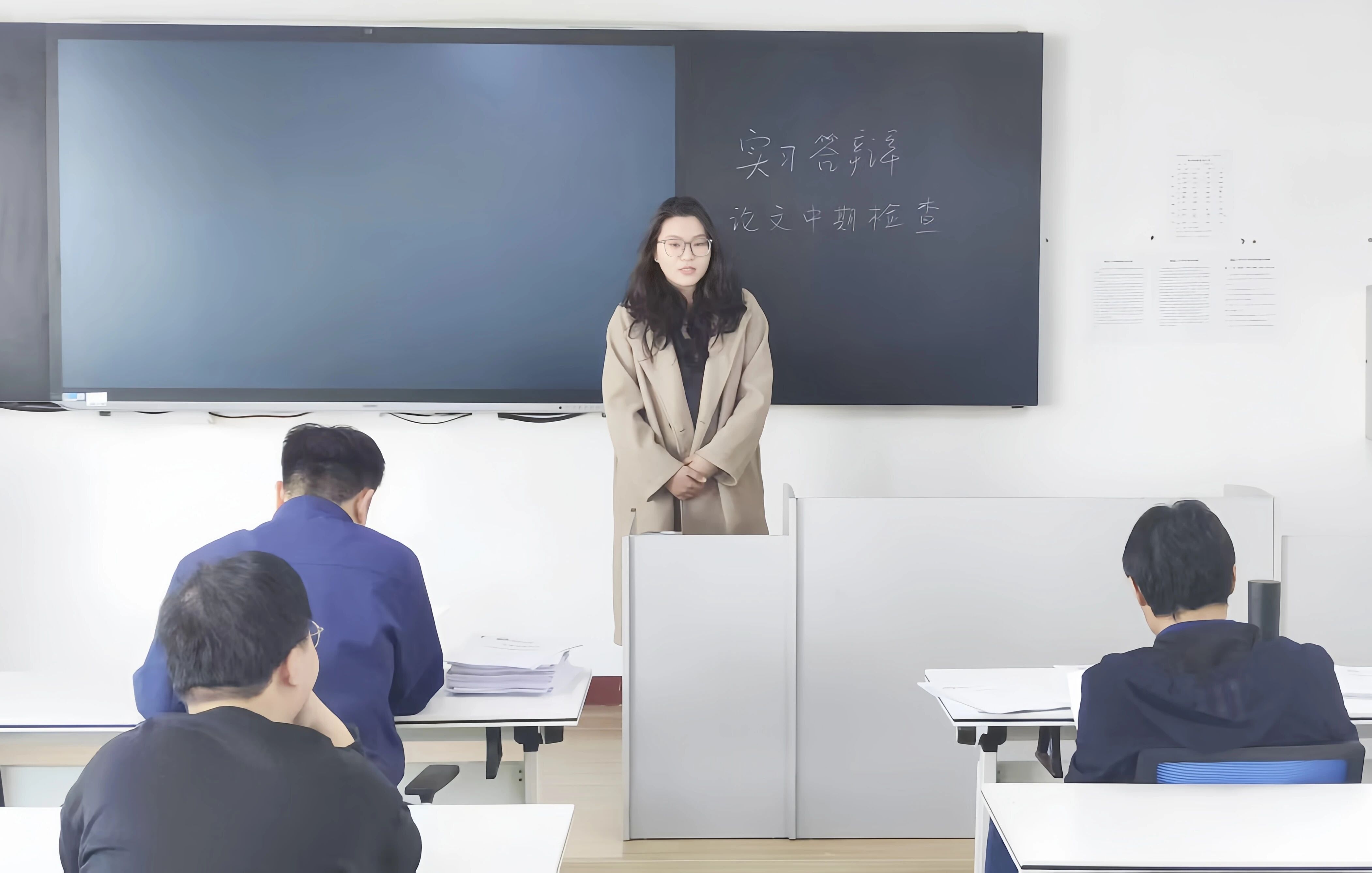 答辩以“实习汇报+论文进展”双线模式展开,共分为毕业生汇报、教师提问、教师点评三个环节。同学们依次就个人的毕业实习经历和论文进展情况进行详细汇报,答辩导师对员工的实习和论文给予了充分肯定,同时也指出问题和不足。针对实习,导师们建议要进一步加深对实习岗位的理解,提升专业技能,将实习经验转化为宝贵的职业财富;针对论文,导师们强调了研究的创新性和实用性,提醒同学们要注重数据的分析和论证,确保论文严谨科学;导师们还就论文的格式、引用等规范性问题提出具体建议。