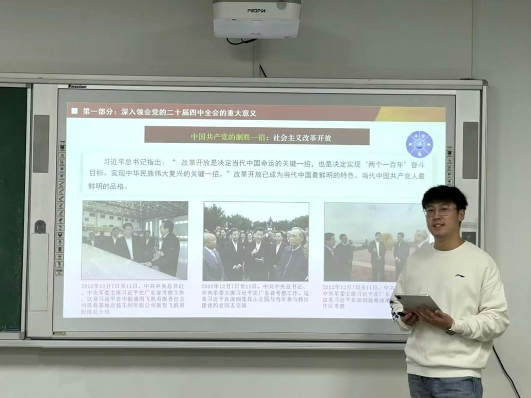 为深入学习贯彻党的二十届四中全会精神,11月23日,英国be365官网于712室召开党的二十届四中全会理论学习会,研究生会秘书处工作人员刘建昊担任主讲人,公司2024级、2025级全体研究生参会。